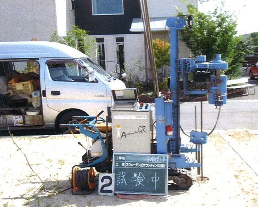 地盤調査は『スウェーデン式サウンディング試験機』と呼ばれる機械を用いて、